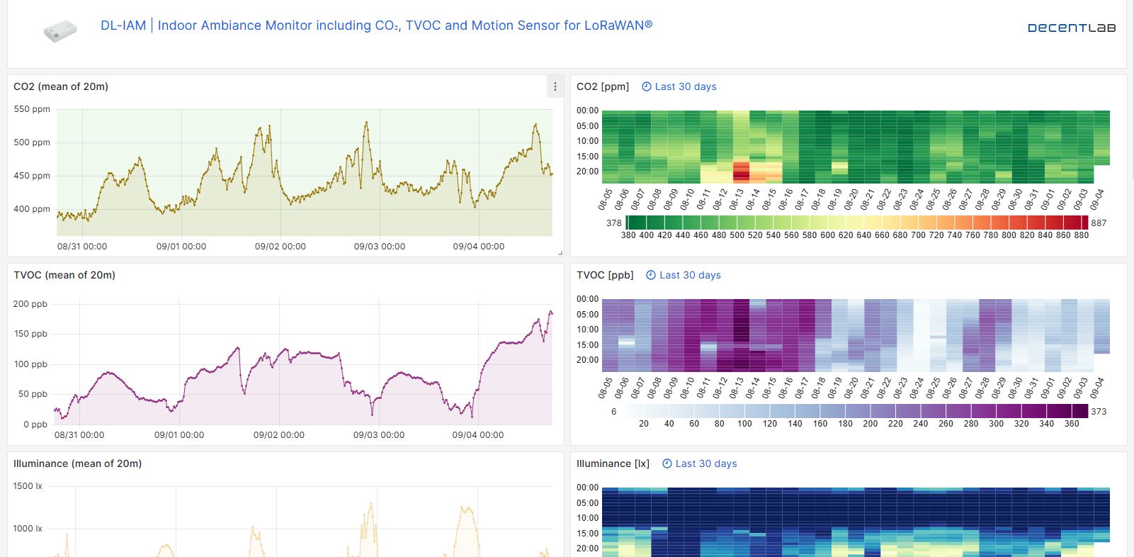 The Decentlab CO₂, Temperature, Humidity, and Barometric Pressure Sensor is a versatile, high-performance solution for accurate environmental monitoring in diverse applications. Equipped with state-of-the-art sensors and LoRaWAN® wireless technology, this device enables seamless remote monitoring for enhanced indoor air quality, storage conditions, and smart building management.